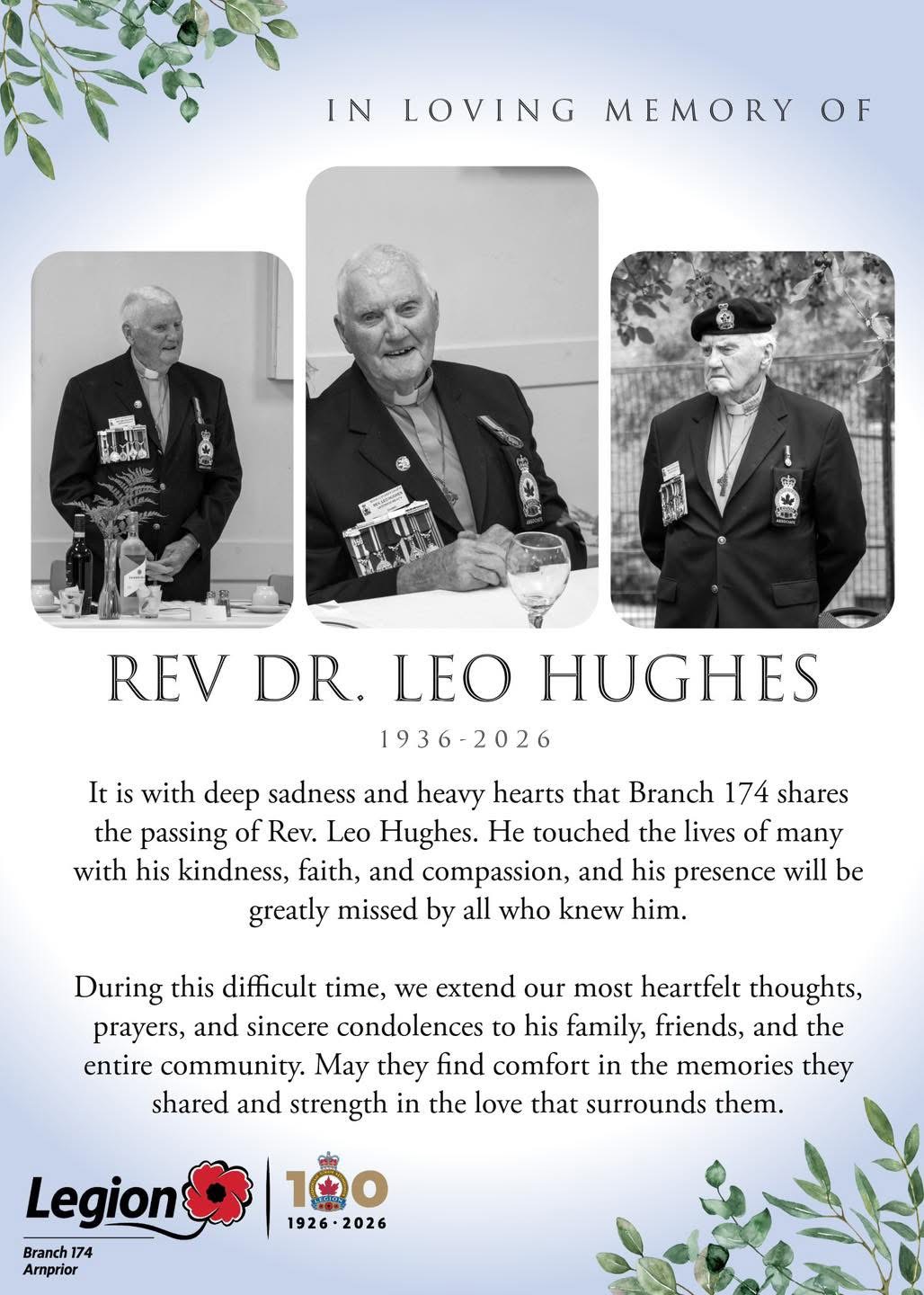 Rev Hughes was a dedicated spiritual leader, a compassionate friends to many, and a guiding spiritual leader within our legion. His unwavering support and commitment to serving others touched the lives of many, both within our branch, and throughout the community.